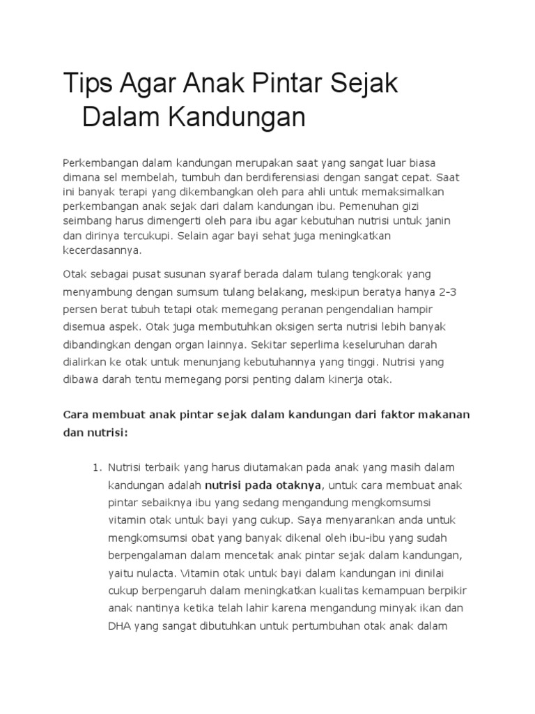 Dengan begitu anda bisa berkonsultasi mengenai perkembangan janin dalam kandungan anda. 20 tips untuk ibu hamil agar bayi cerdas sejak dalam kandungan paling ampuh yang bisa dilakukan dengan pola makan aktivitas fisik hingga kegiatan lainnya. Olahraga masih menjadi bagian penting dari pola hidup sehat ibu hamil untuk menjaga kesehatan.