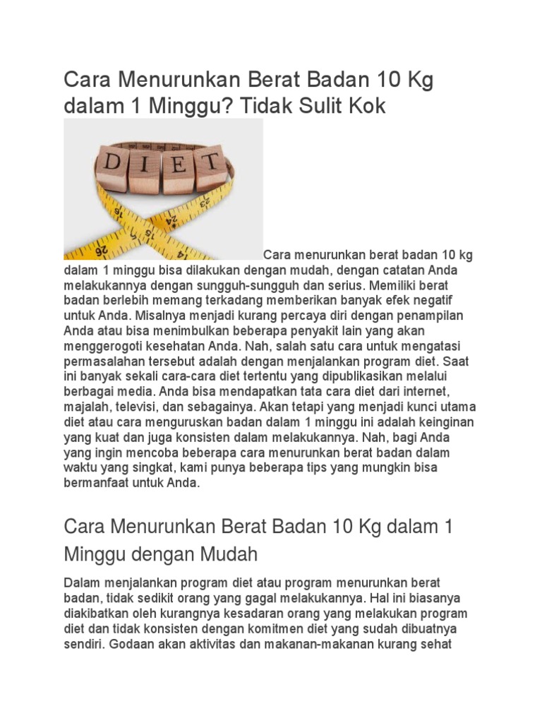 Cara Menurunkan Berat Badan 10 Kg Dalam 1 Minggu