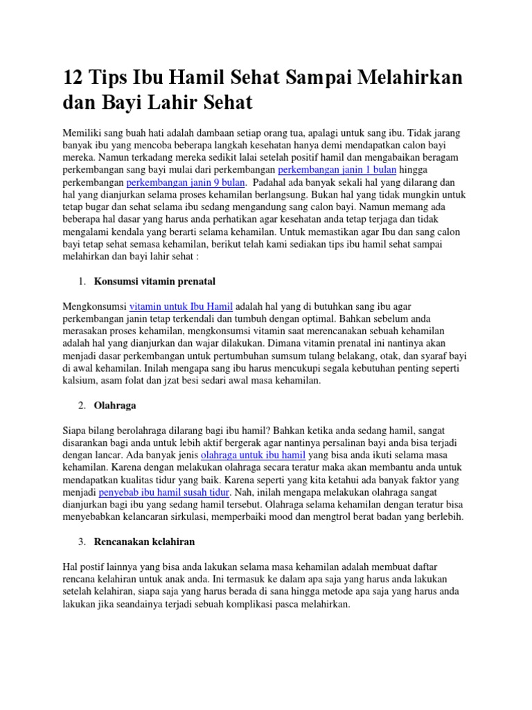 12 Tips Ibu Hamil Sehat Sampai Melahirkan Dan Bayi Lahir Sehat