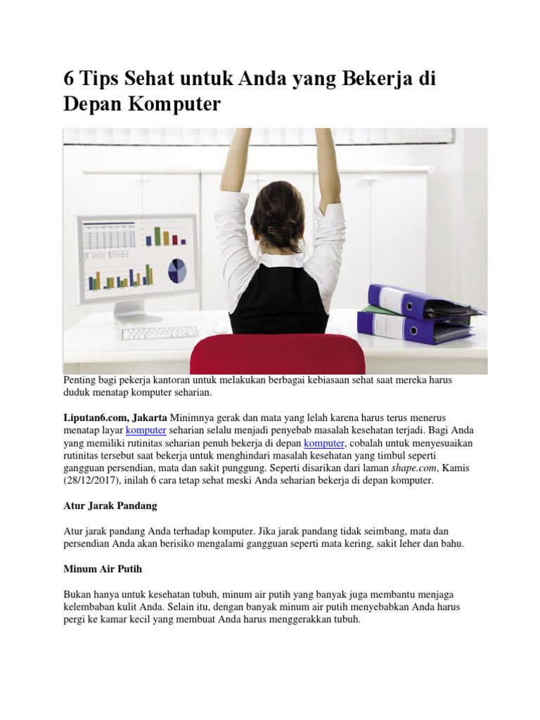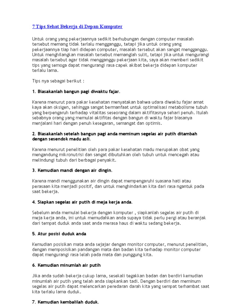 Home tips 10 tips sehat saat duduk dan bekerja di depan komputer october 31 2017 june 24 2019 by om komputer 1 comment sebagai seorang yang sebagian besar waktunya dihabiskan di depan komputer wajib rasanya untuk memperhatikan kesehatan tubuh. Tips agar tetap sehat meski bekerja di depan komputer 8. Menjadi seorang karyawan perusahaan yang lebih banyak bekerja di depan komputer memang memiliki sisi negatif dan positifnya.